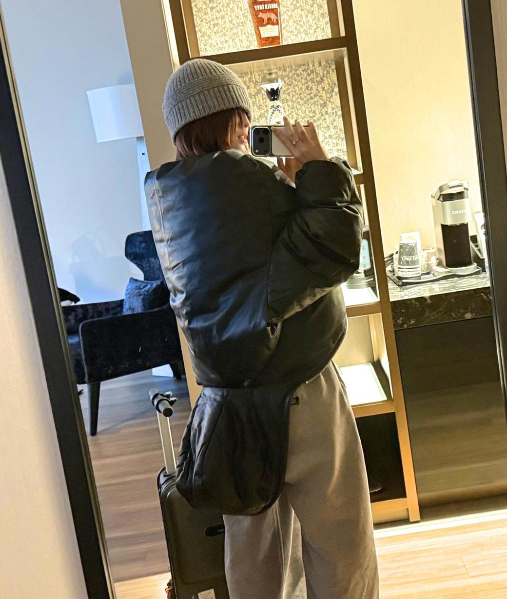 "Сегодня, когда я вернулась в отель и глянула на себя в зеркало то увидела, что на мне куртка одета капюшоном вниз. Это было так шокирующе, что я сделала фото кх-кх-кх. И сразу стало понятно, почему мне было так неудобно во время прогулки. Затем я позвонила Чонён и спросила, видела ли она, как я одета. И она мне ответила, что конечно, видела и подумала, что я это сделала осознанно, чисто по-приколу."