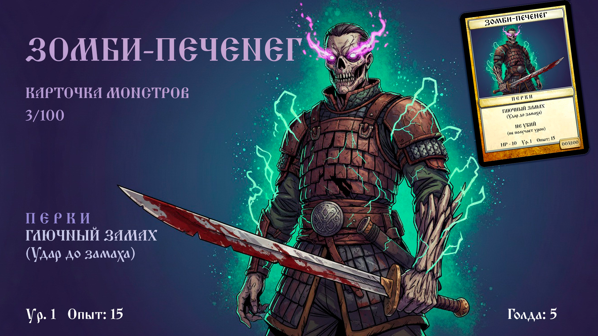 А пока — знакомьтесь с одним из противников, с которым столкнутся наши герои. Перед вами Зомби-Печенег! Не самый приятный тип, правда?