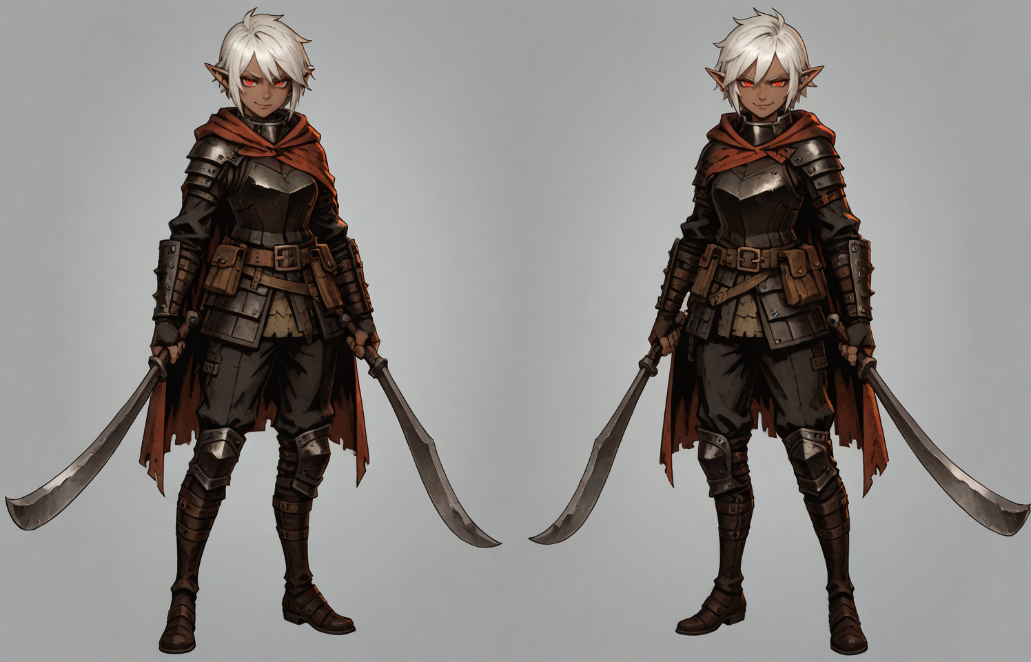 Используемы промпты:"scimitars in hands,weapon,holding,holding scimitars".
