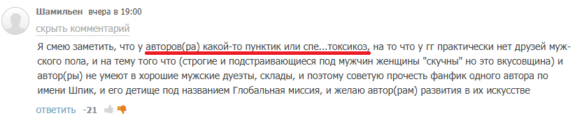 Я смею заметить, что у авторов(ра) какой-то пунктик или спе...токсикоз