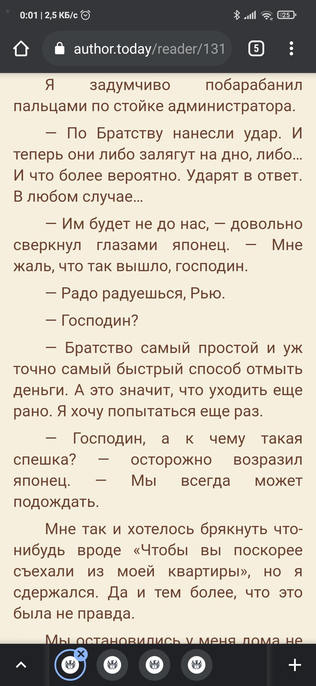 Автор, что думаешь насчёт того чтоб выпускать главы через день , но с большим объемом? 40-50к знаков. ну в этой книге такое уже не сделаешь но как насчёт следующей? Лично мне это было бы лучше. А то читаешь , "разгоняешься" и вот когда разогнался глава заканчивается, и такое лёгкое неприятное послевкусие.