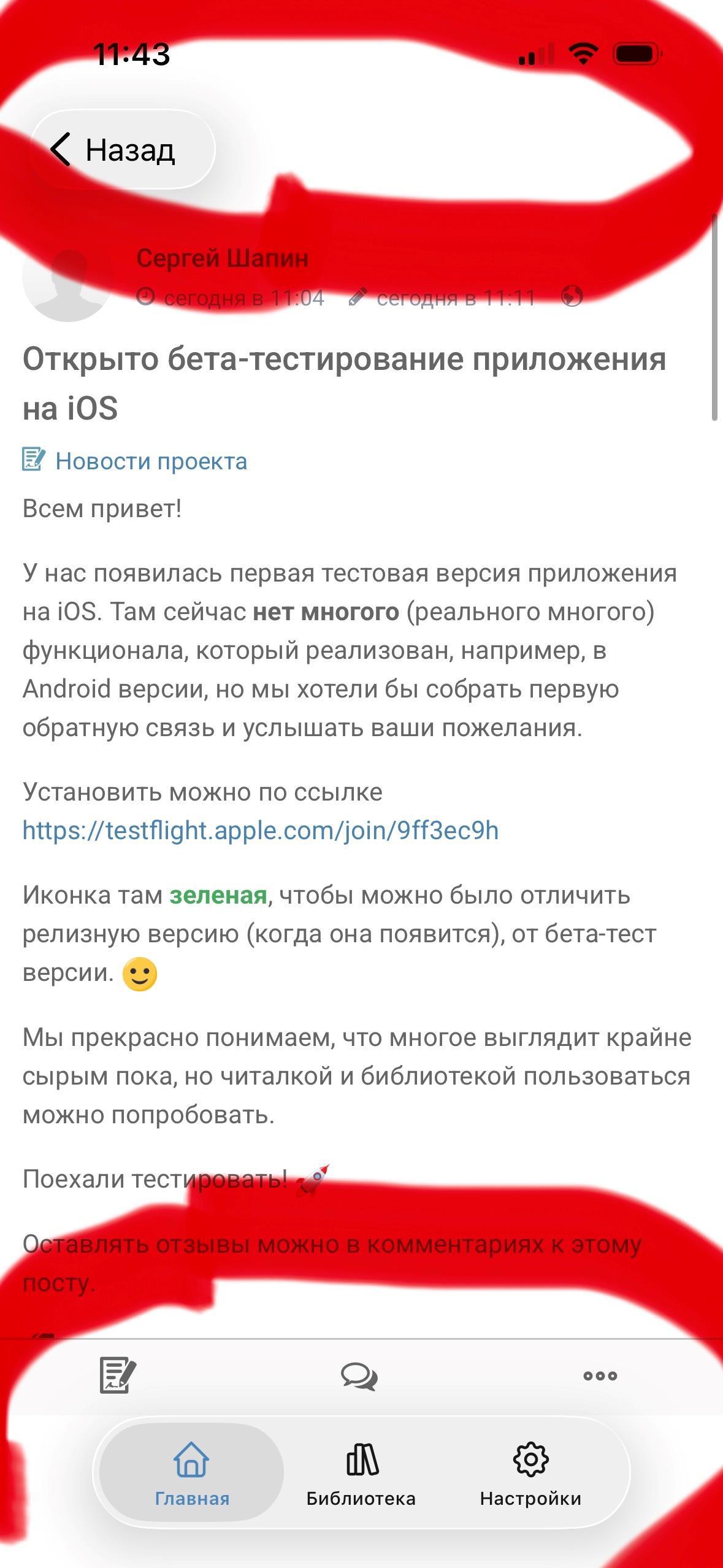 Написал(-a) комментарий к посту Открыто бета-тестирование приложения на iOS