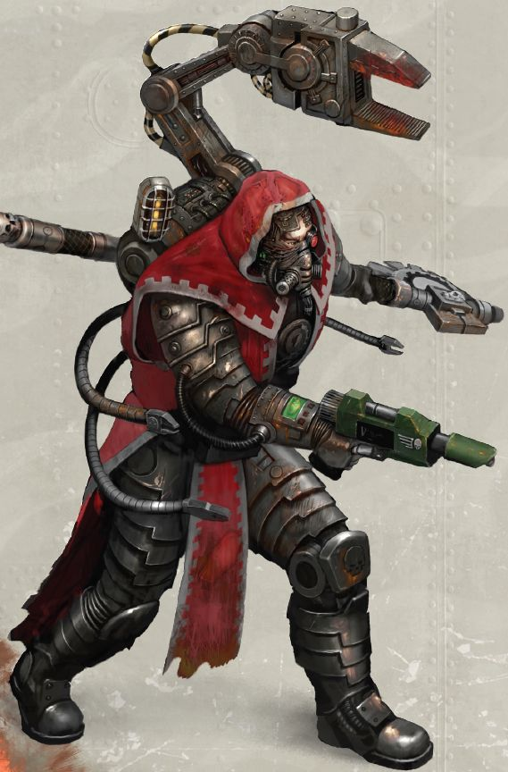 "Драконья чешуя- штатное облачение техножрецов-воинов Магосов Милитант и полевых инженер-провидцев, приписанных к действующим подразделениям Имперской Гвардии. Каждый из комплектов драконьей чешуи индивидуально и вручную отковывается из адамантиума, усиливается керамитовыми пластинами, благословляется молебнами о прочности и покрывается микро-гравировкой из фрактальных магических ограждающих формул. Уровень защиты, обеспечиваемый драконьей чешуей, сравним с лучшими образцами силовых доспехов, а величайшее ее преимущество состоит в том, что всю необходимую для работы энергию чешуя черпает из конденсаторной катушки носителя, а значит, ей не требуются никакие внешние источники питания."![]()