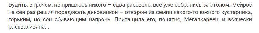 "Нганго как-то притащил стручки рожкового дерева с очень сладкой и сочной мякотью и с чрезвычайно твердыми семенами." О, знаю с детства! Это гледичия или конфетное дерево. На моей малой родине, в Бессарабии, мы в детстве эти стручки потрошили и ели сладкую оранжевую мякоть. А что в нём и семечки (то есть бобы) съедобные - не знал :)