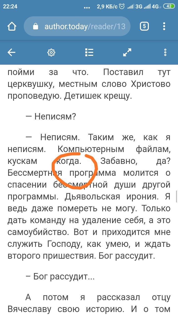 Доброго времени суток, книга очень понравилось, спасибо. Обычно при чтении ошибок не замечаю но эта бросилась в глаза я про "кускам когда"