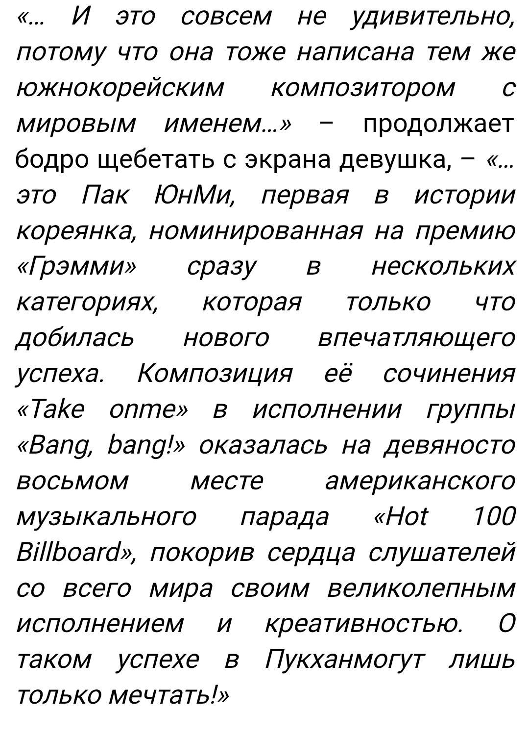 Почему все должно заканчиваться концертом . Есть много веток развития сюжета , можно вспомнить предсказания мудан, или Корея слезно просит прощения в лице президента , можно поехать во Францию взять с собой Коронок и там что нибудь закрутить . Контракт с sony music был заключён на полгода , нужно создавать своё агентство и т.д. Автор молодец
