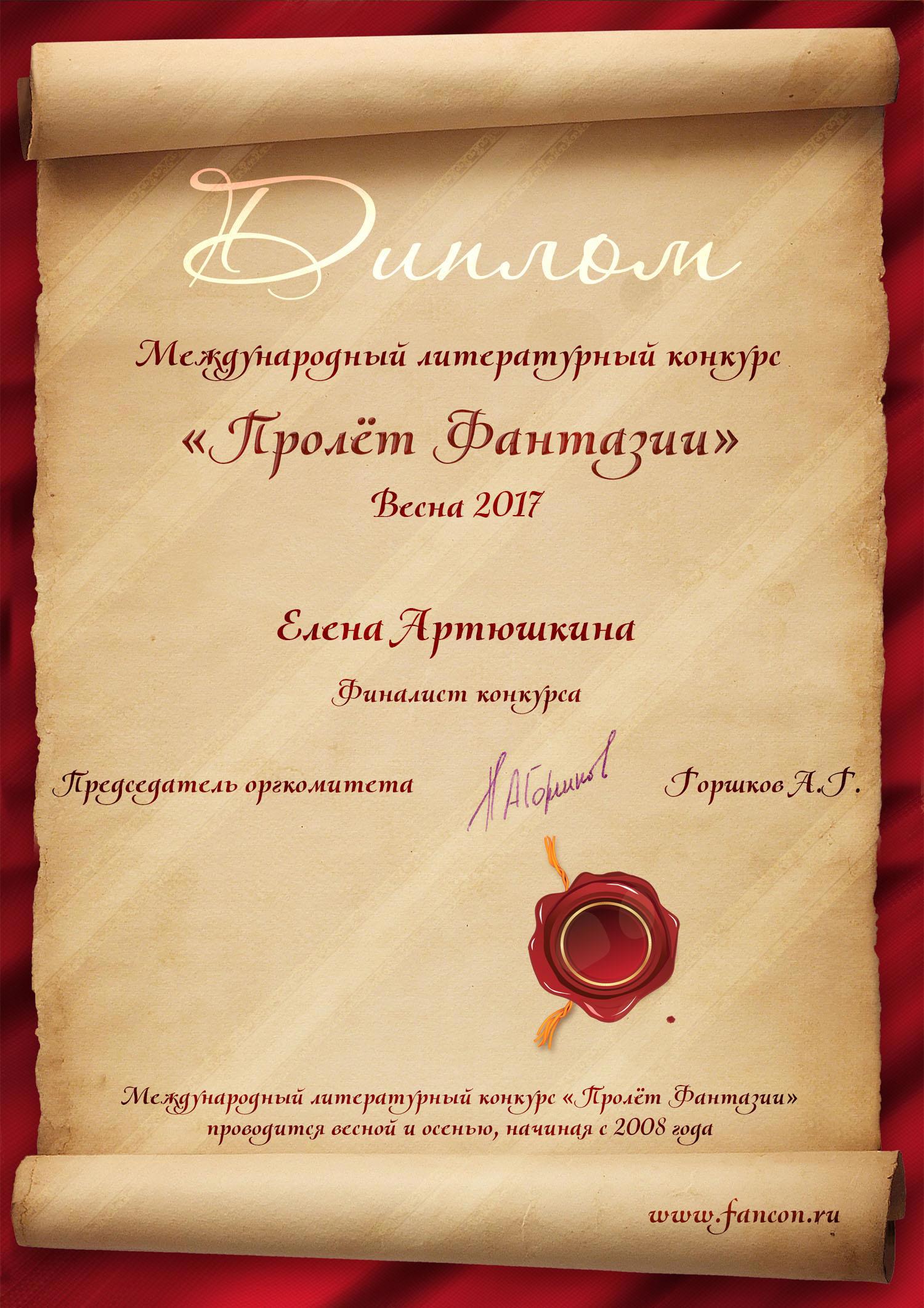 - Рассказ «Колдун и виеса» — шестое место, «XVIII Весенний Пролёт Фантазии 2017»;
