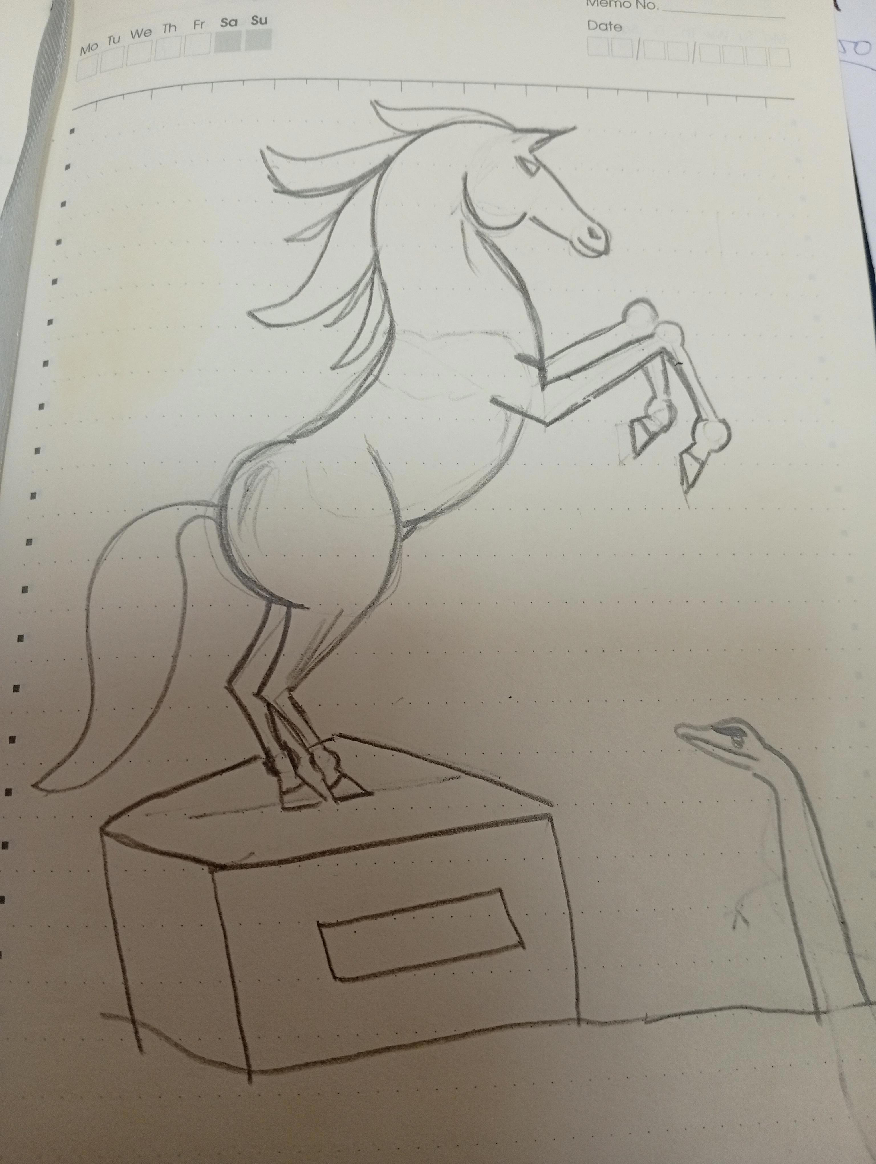 Я внезапно)) осознал, что давно не генерировал иллюстрации для Капбы. И тут ещё совпало, что Евгений как то писал про художника, который должен уметь рисовать лошадь с 4 ногами и техсовет сегодня был особенно нудный... Вообщем держите - завр вылез из воды и смотрит на статую лошади, которая вот вот оживёт и погонит животинку из родной хтони))