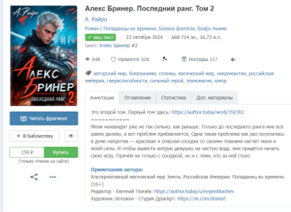 Книга выходит в топ по просмотрам и лайкам. Люди ее замечают, видят хорошие отзывы и покупают. Даже если брать самый плохой вариант для автора, когда половина лайков и просмотров с комментами - накрутка, все равно выходит неплохая сумма. Так что ваш смайлик в конце, которым вы хотели подчеркнуть ваше превосходство надо мной в том, что вы такой умный и поймали меня на несостыковке, может пойти в одно место. Я понятно объяснил?