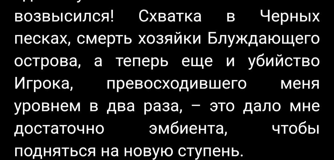 И дополнительно пруфаю тем, что сбор трофеев с тел трёх игроков, двое из которых его по ступеням превосходили, Рэн потом не упоминает как значимый источник эмбиента