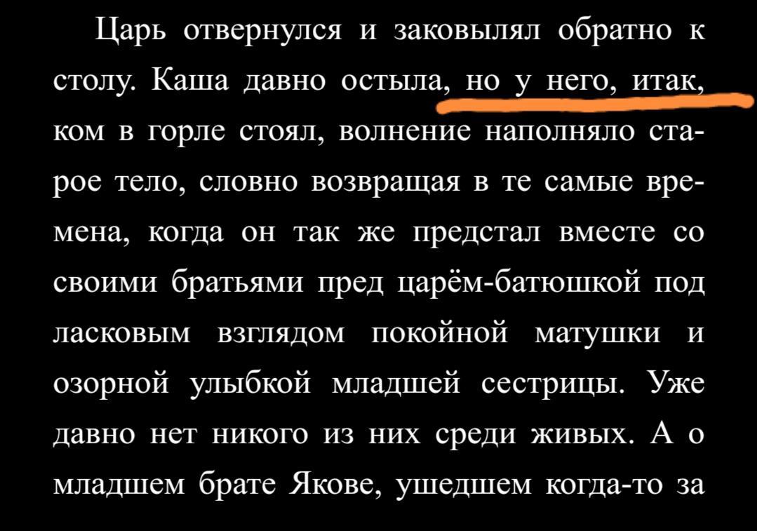Есть пара мест, где вместо «и так» написано выделенное запятыми «итак».