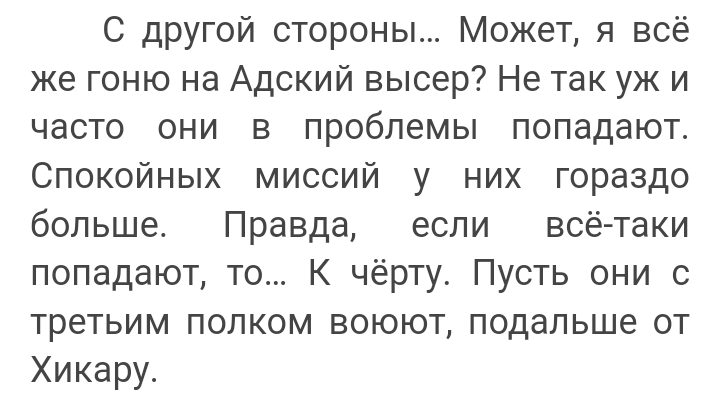 Блин! Я так хочу прочесть, как Кента ох**неет от Адского Высера... И поймет наконец, почему они так названы, и почему Синдзи к ним так относится. Ей-ей, одновременно проклятые и благословенные. Влипают там, где это было не возможно, выживают там, где это не возможно.