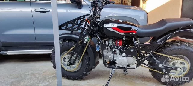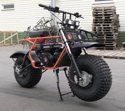 К тому же, это полноценный мотоцикл с мотоциклетным движком, амортизатором и прочим. Что требует кучу обслуживания и ремонта. Зато имеет коробку передач, что позволяет на асфальте "втопить", впрочем - резина не асфальтовая, махом стачивается об него и на асфальте практически не держит при высокой скорости.