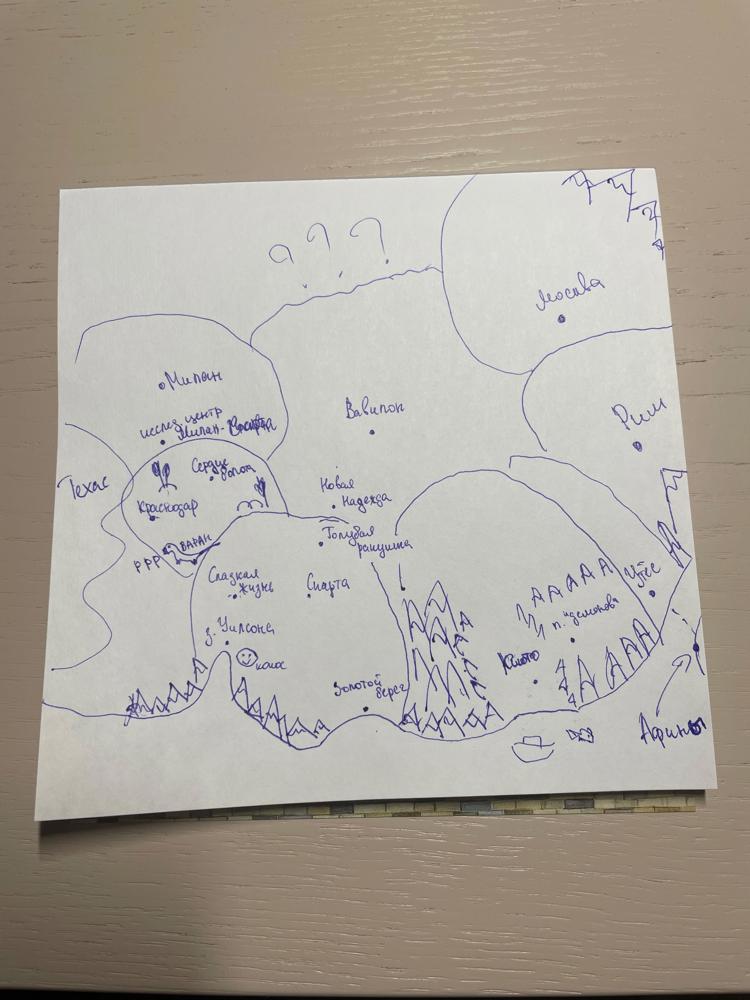 Я не уверена, что нарисовала верно и с пропорциями у меня беда, но как-то так должна выглядеть карта.