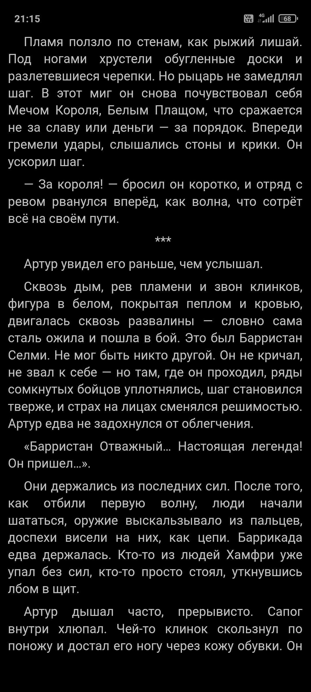 Неплохой фанфик, однако как только автор решил писать с помощью нейросетки, читать пропало всякое желание (да, это очень заметно, ладно бы ты костяк брал у неё и писал его самостоятельно, но нет, ты оставляешь итоговый вариант почти полностью, с этими кринжовыми эпитетами и метафорами, которые писались сеткой под английский язык, а в русском стали неуместны).