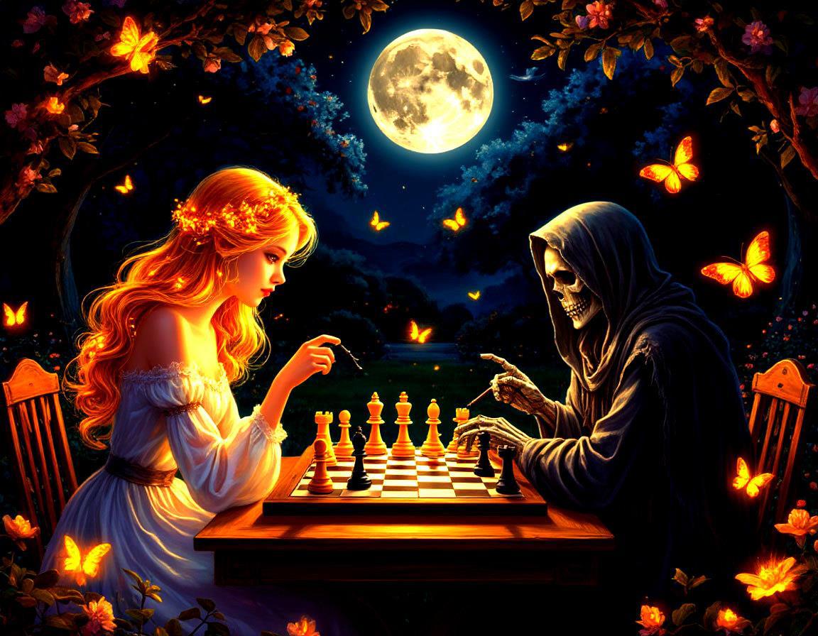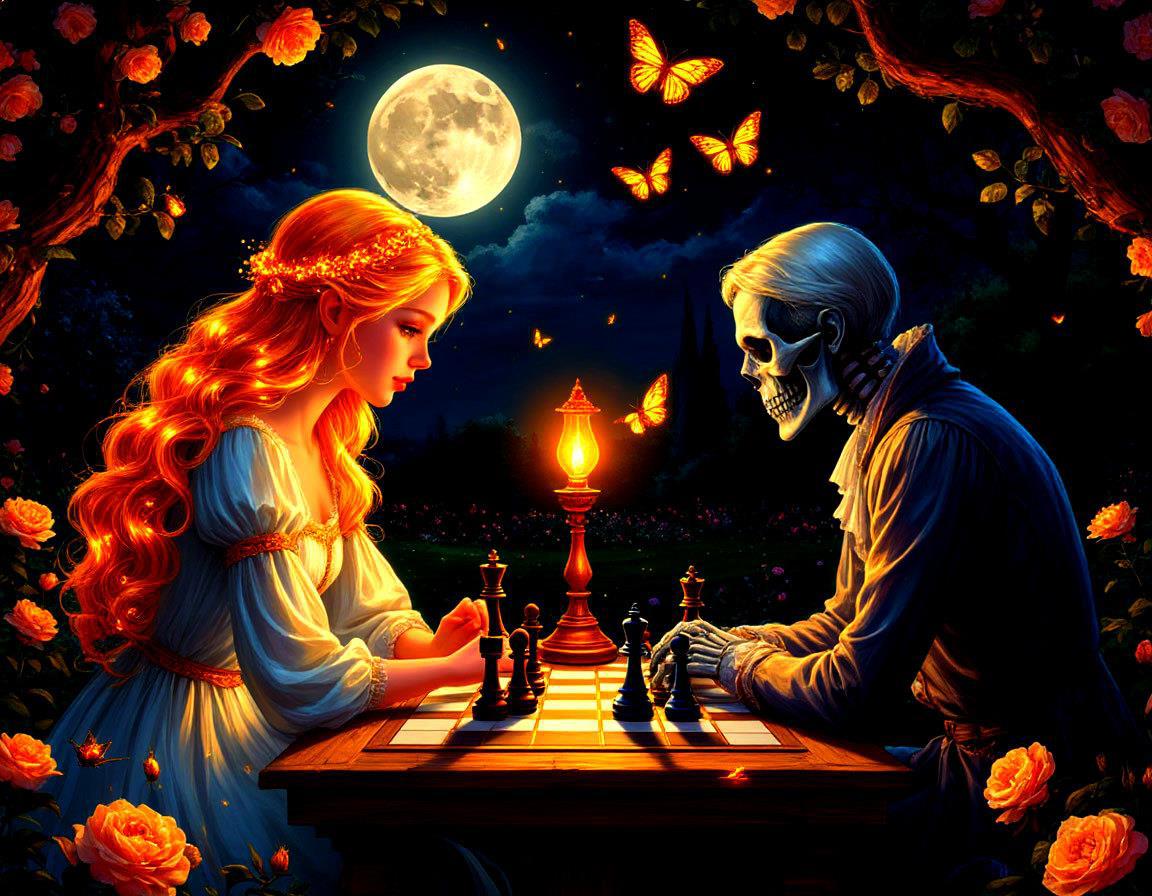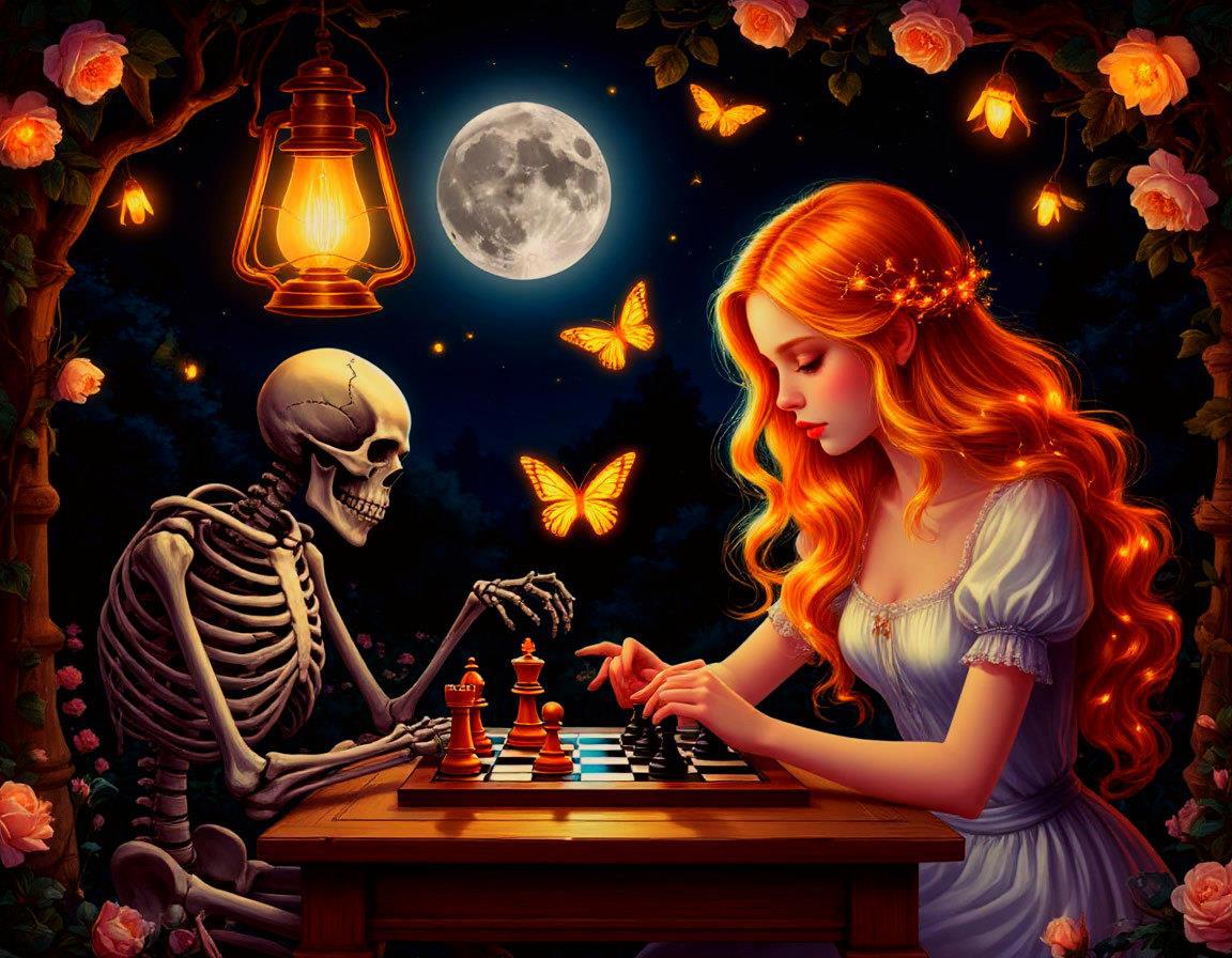 То, что я Вам выложил - это как всегда часть того, что сгенерировано. Самая лучшая часть. Третья девушка мне тоже понравилась, поэтому её и вставил, несмотря на то, что она явилась без напарника. Соединить разные генерации конечно можно, но трудов много. Стоит ли? Ведь это не обложка, не заставка, а просто отклики на рассказ. Да, у Вас в рассказе девушка за доской не сидит. Но у меня образ сформировался как-то сразу, а когда я потом попытался посадить за стол мужчину, понял, что не то, не смотрится. И вот Вам ещё одна картинка в догонку.