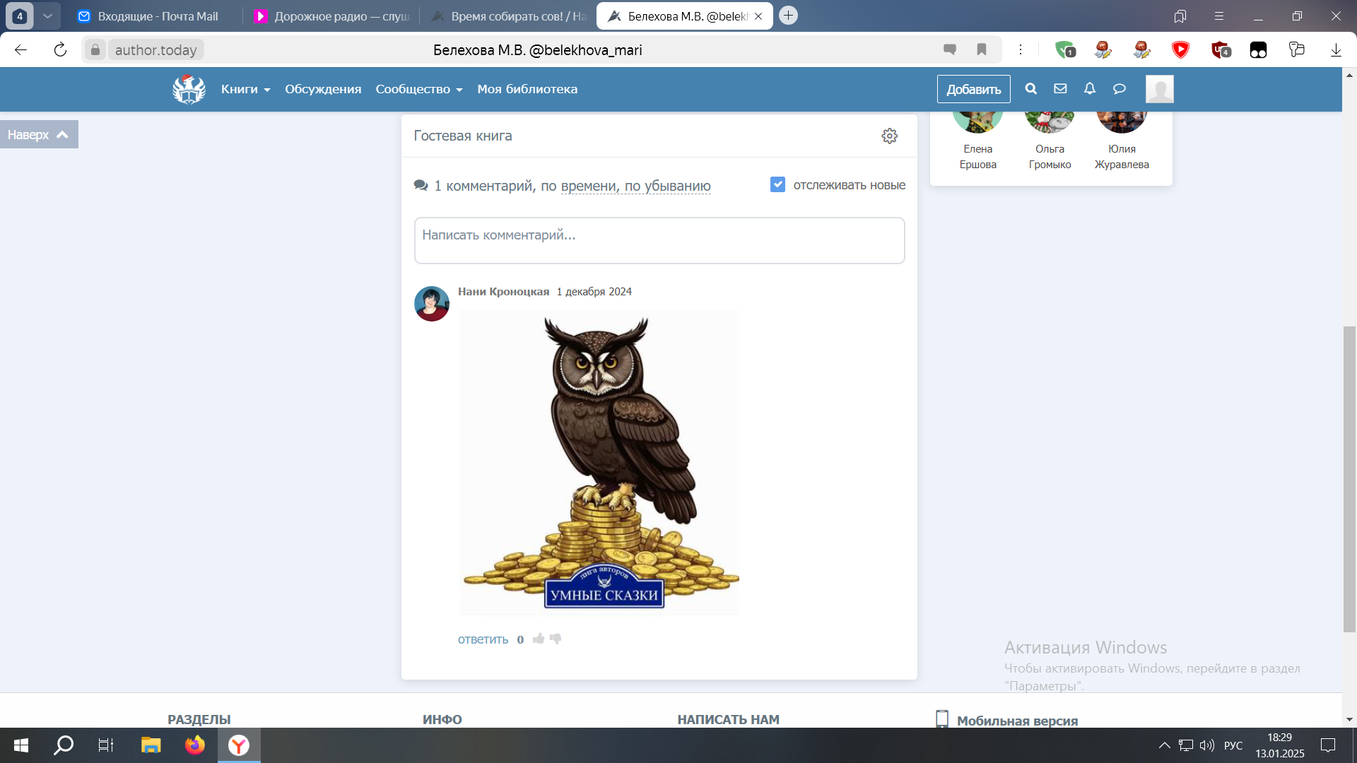 Спасибо, спасибо. Так приятно познакомиться с вами, Ульяна! Хотя давно люблю и читаю фэнтези с вашим творчеством только знакомлюсь. Читала прекрасные отзывы ваших коллег - моих любимых и уважаемых писательниц. А теперь и сама почитаю!!!