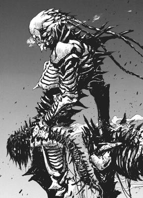 Под прообраз биопанк-нидзя могу посоветовать от автора "блейм" (цутоми нихэй) посмотреть работу "абара". Очень похоже на димортул