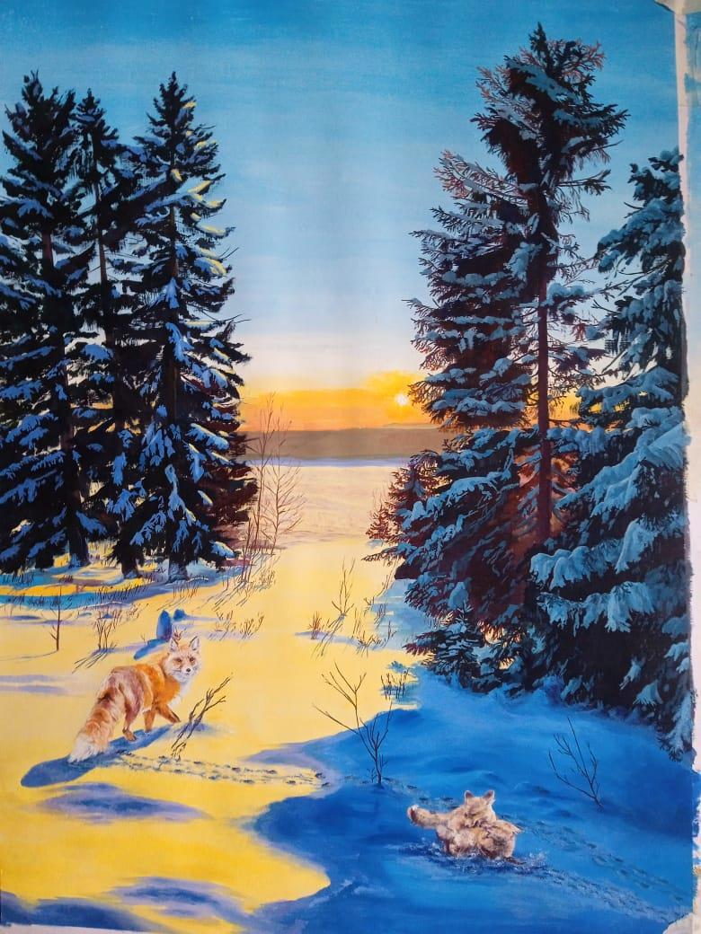 Прочитал все циклы этого произведения. Очень нравится. Дети у меня занимаются рисованиям и приблизительно когда вышла глава с описания лисьей норы они нарисовали этот рисунок. И почему-то  когда я на неё смотрю я вспоминая описание картины на стене  которую описывал автор