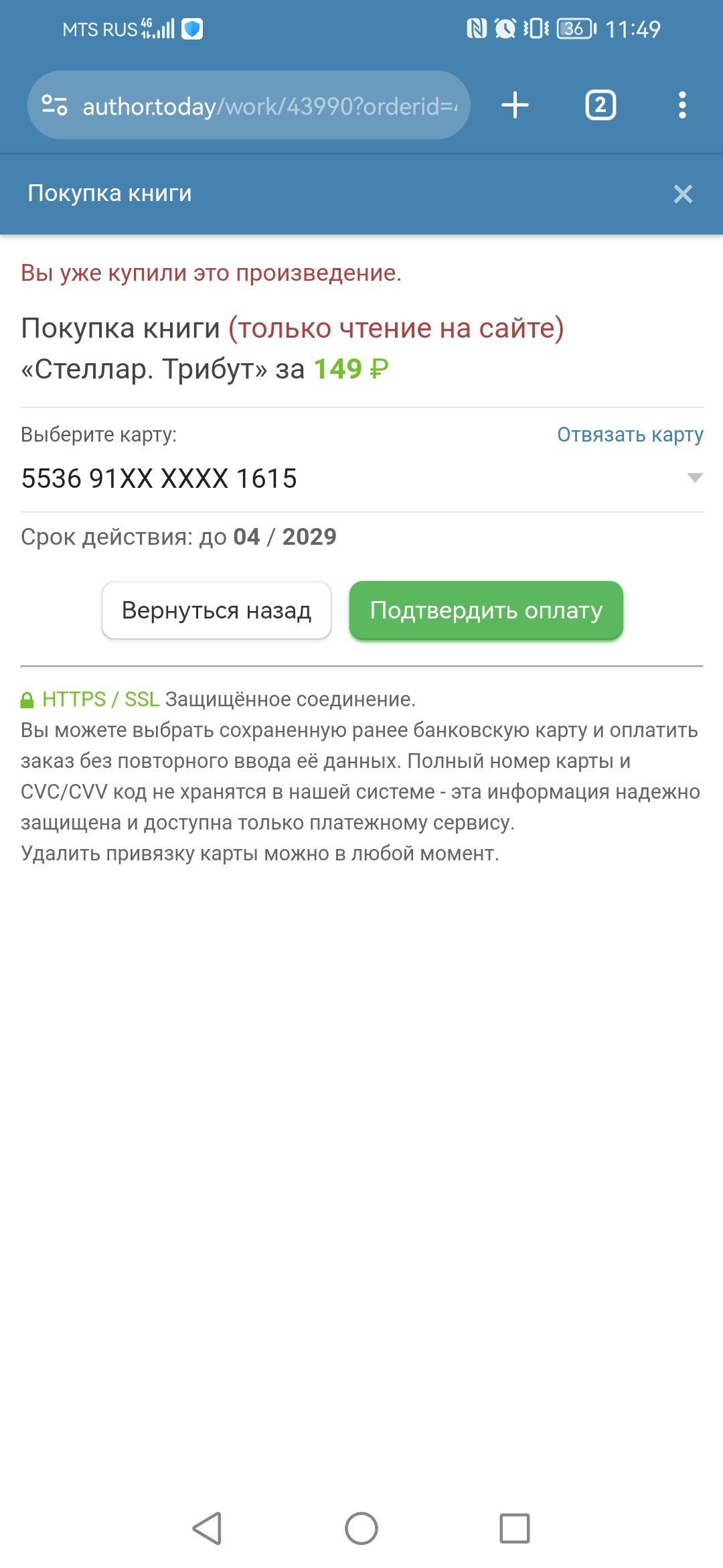 Прочитал 1 главу. Перехожу на 2 говорит купите. Оплатил. Говорит вв уже приоьрели данное произведение. Деньги списались. Но 2 главу не открывает говорит купите