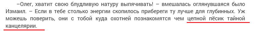 2. Если уж все обойдется, я надеюсь Сирион конкретно "пройдется" по Серсее и Маргери и их умственым способностям? Причем так чтобы в будущем сидели как тараканы под плинтусом. Интриганки доморощеные. Власти им захотелось.