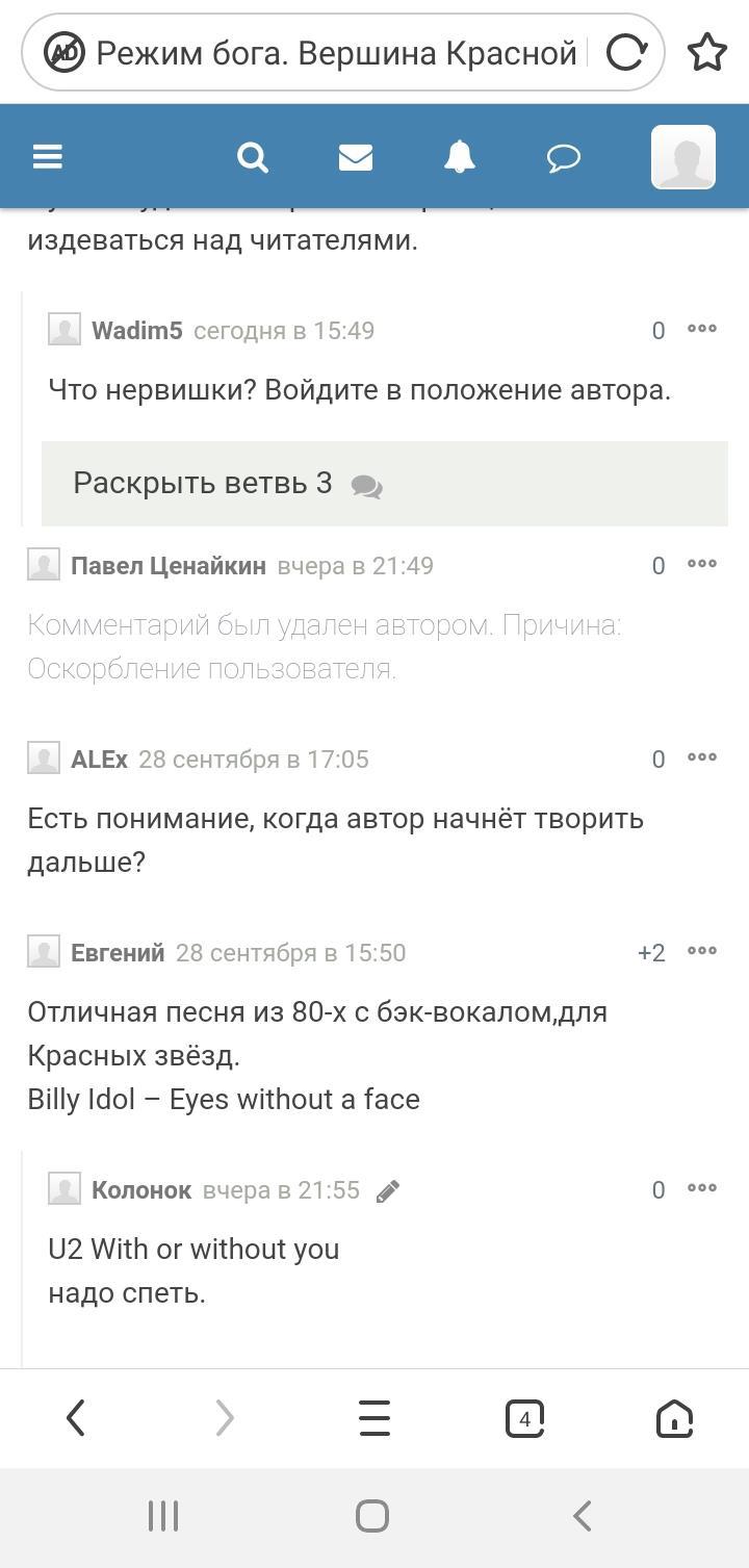 Этот автор очень смешной, он недавно выложил - как надо реагировать на критику, смешная картинка с смешным дядькой. А меня в бан. Вы можете думать я его оскорбил? Там было все вежливо, уж поверьте.