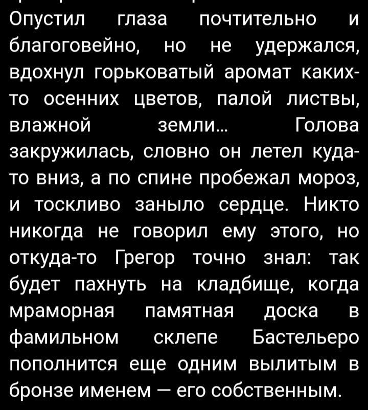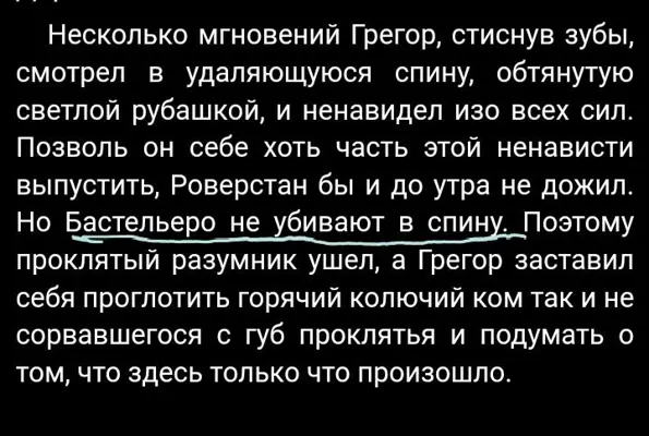 я в шоке была. И потом в 3 томе "клинком и сердцем" он для меня раскрылся и я была счастлива что они с Айлин будут вместе. А потом, авторы снова меня "убили" когда Айлин сказала ему что выйдет за Бастельеро. Я прям негодовала, даже бросить читать цикл хотела, но потом перебесилась, и подумала, а почему все так? Почему сначала такой прекрасный Дункан плохим мне казался, а Грегор хорошим? и почему так все поменялось? и начала я перечитывать..... и вот что я вам скажу, дорогие коллеги читатели...сколько там всего, сколько моментов, на первый взгляд незначительных, но приобретающих в будущем огромное значение, сколько отсылок к будущим событиям, сколько контрастных оборотов, я не помню даже у классиков такого огромного количества мелких деталей. Это как надо было продумывать весь сюжет? в моей голове не укладывается. И, мне кажется, человек сразу, чисто физически, не сможет уловить все это сразу.(Ну может, конечно, это я слегка тупенькая)🧐
