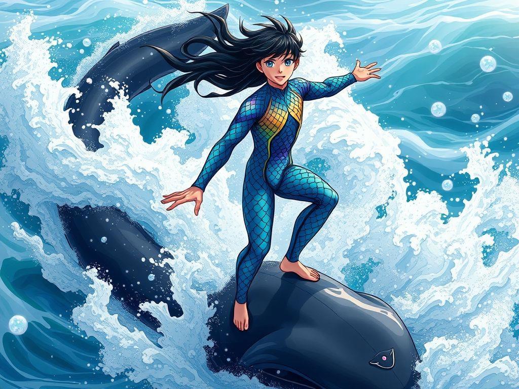 Никак эта сцена не отпускает. Когда Ву катался на морском угре. Сделала с помощью ии картинку