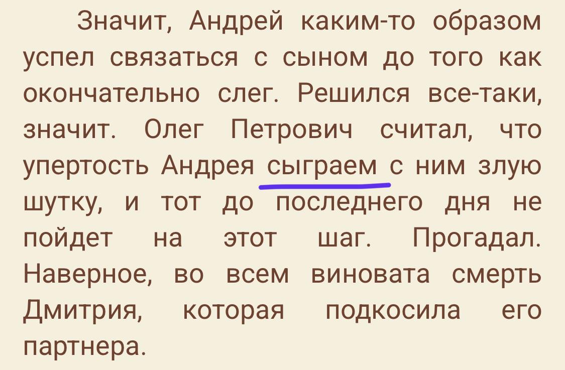 Последняя глава: «Прошло 7 месяцев. Успешный бизнес, двое детей (откуда???), счастливо женат, несчастливо имеет трёх любовниц, выиграл в суде против Романа, нагнул Зеркального, сгонял в прошлый мир (а, вот откуда)»