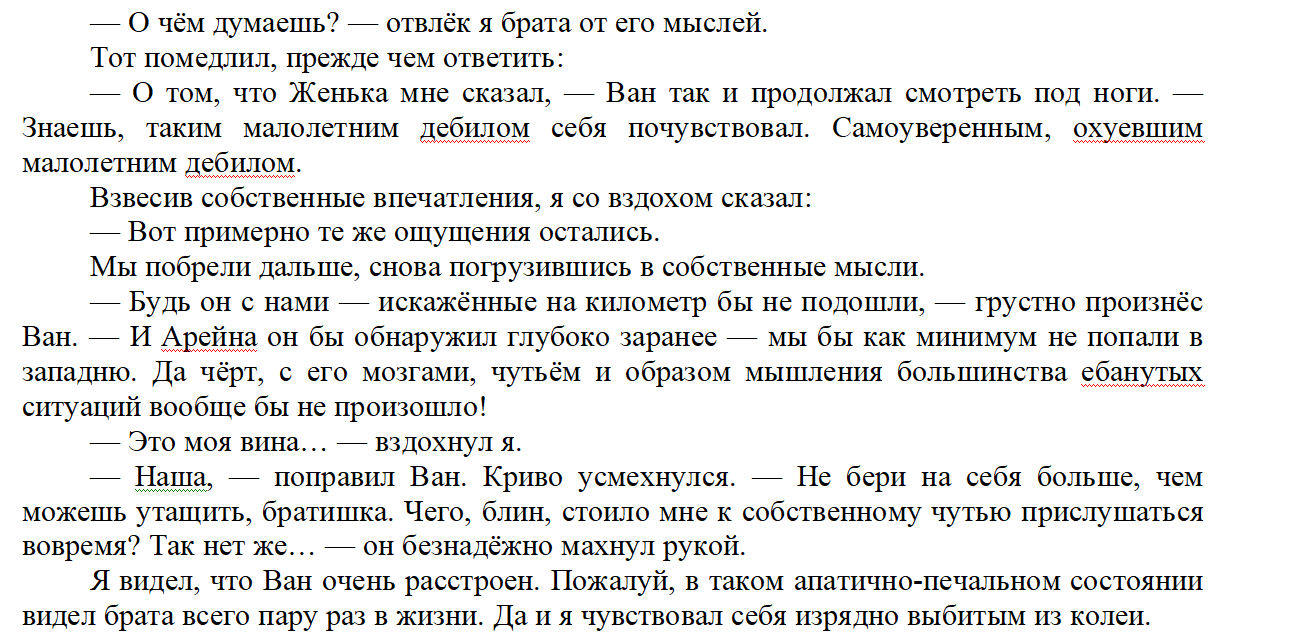 Спасибо. Я, вроде, и знаю как всё закончиться должно, но пока пишу - теряю уверенность в том, что он выберется - когда ощущаю его чувства, когда идут за ним по пятам и наблюдаю...