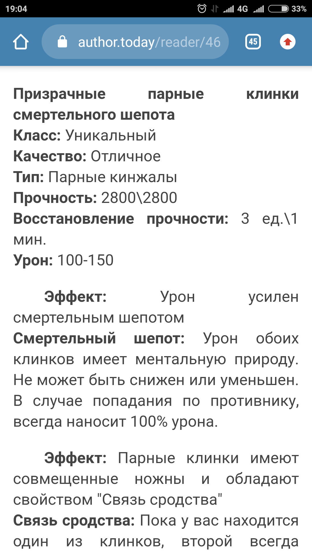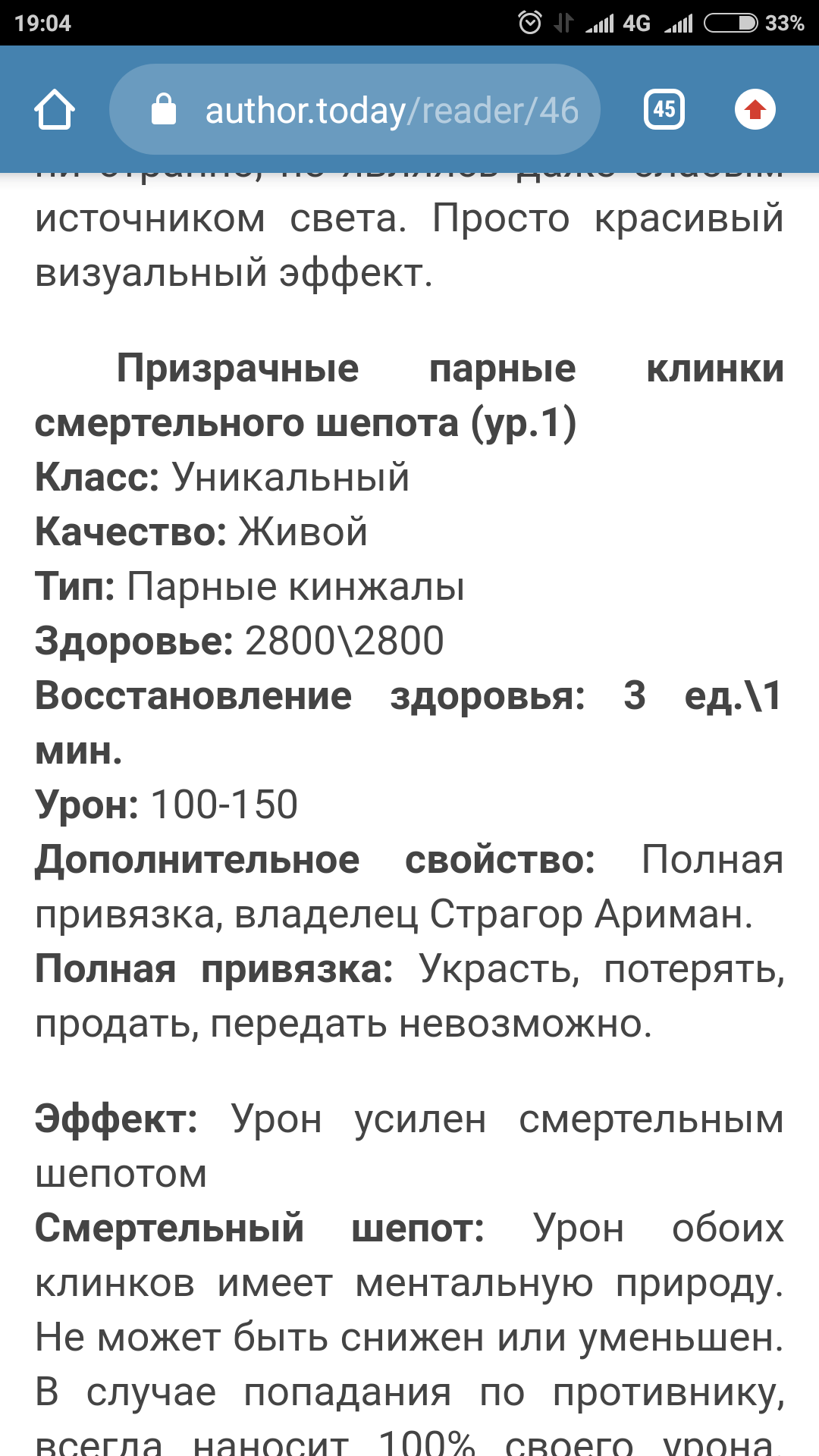 В конце характеристики не актуальные, расхождение с 3 главой по парным клинкам. Расхождения вычислителя, он же у него стал автономным маны не требующим. И так по мелочи, не мешало бы сверить все. Да и ещё вопрос по уровню оружия. Хотя... Начало третей книги - хитро, не нужно заморачиваться с прогрессом живых доспехов и оружия, браво!