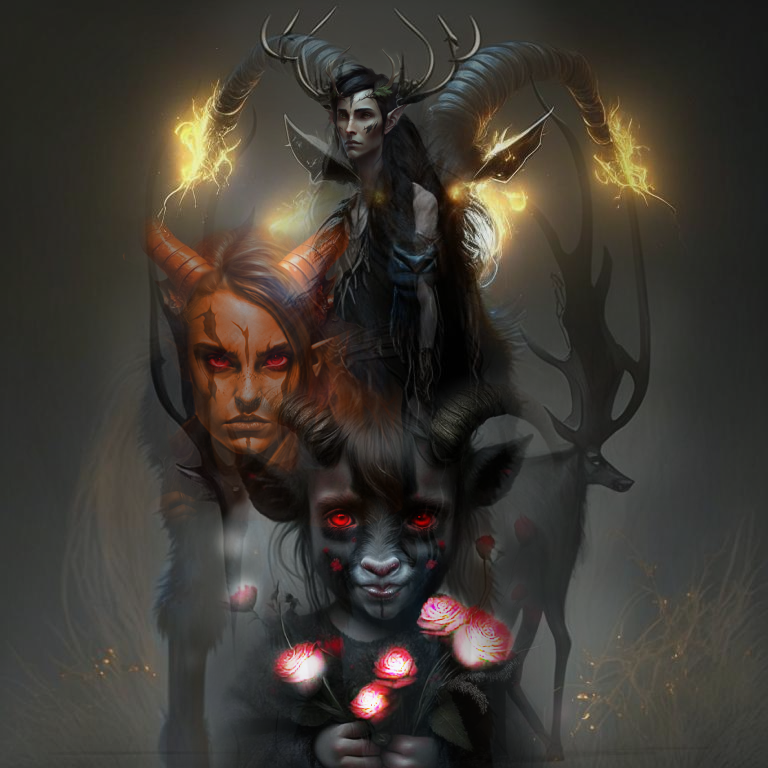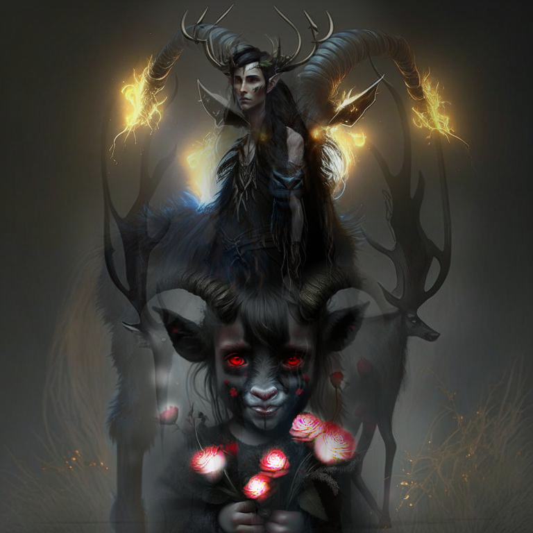 "Повелитель зверей и чудовищ". Два варианта. Нейросеть и фотошоп.
