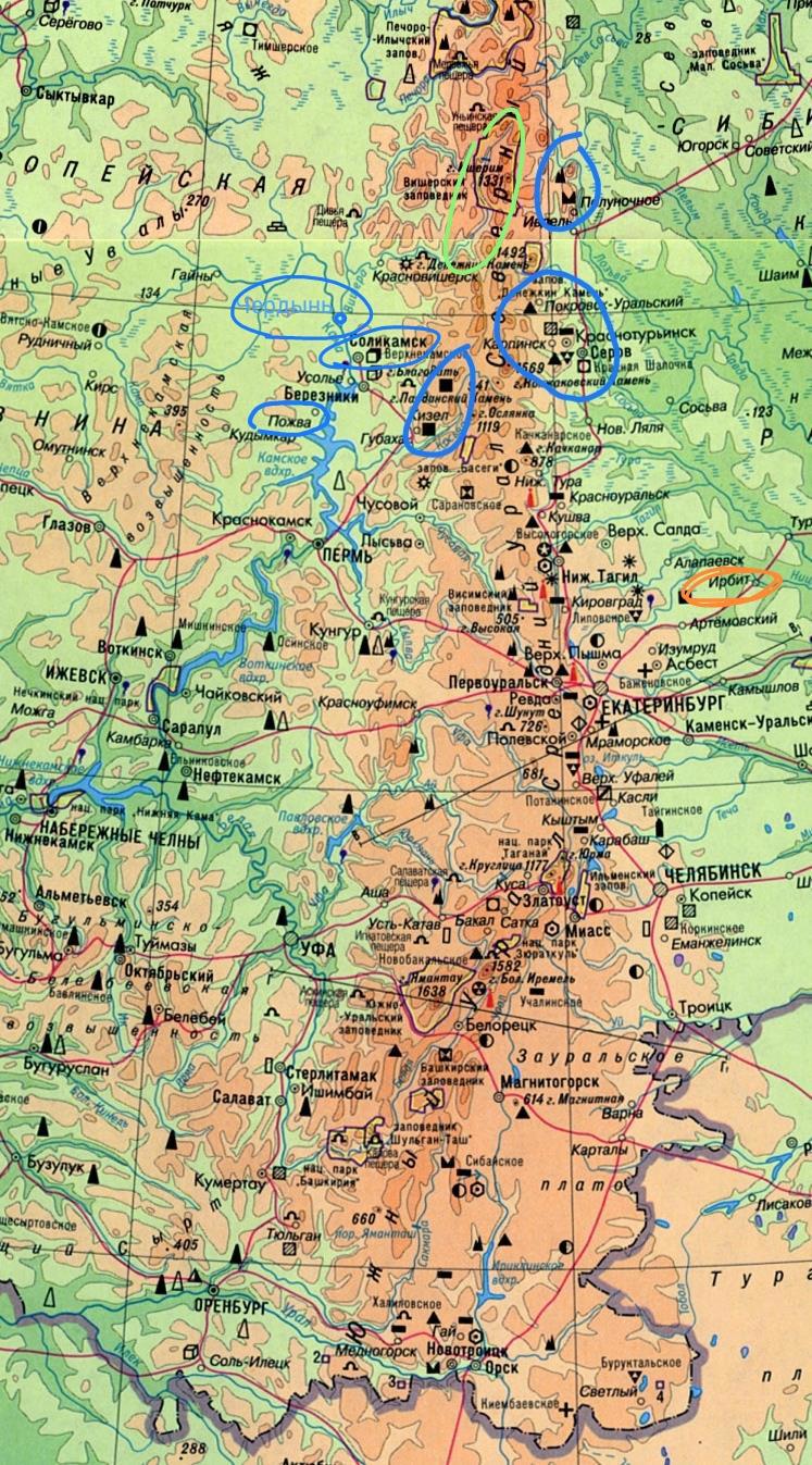 Ещё немного карты по местам месторождений и упомянутым пунктам.