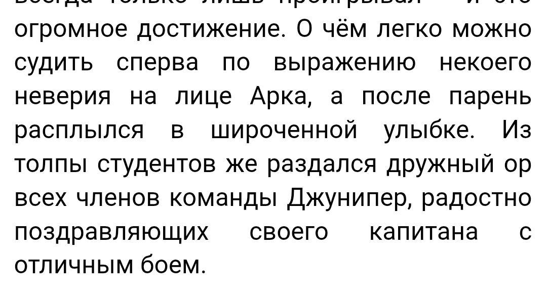 Мне кто-нибудь объяснит когда Джон Арк успел стать капитаном команды Джунипер если эта роль в книге была отдана Пирри Никос. Просто у меня появились вопросы вот к этому отрывку который выделен. Либо я пропустил момент когда Джона назначили капитаном команды Джунипер. Либо автор забыл что роль капитана была отдана Пирре?![]()