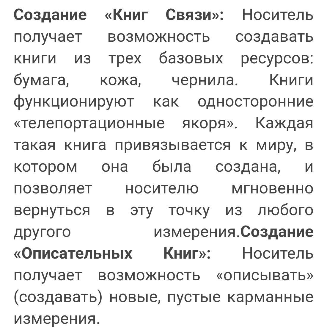 Позволяет воспринимать небуквальные вещи буквально. К примеру «ткани мироздания» это же не буквально ткани мироздания? Не для вас! И так же как и с обычной тканью, вы можете шить из данной «ткани» любые вещи, которые вы могли бы сшить из обычной ткани. Ну или же разрезать её обычным ножом...