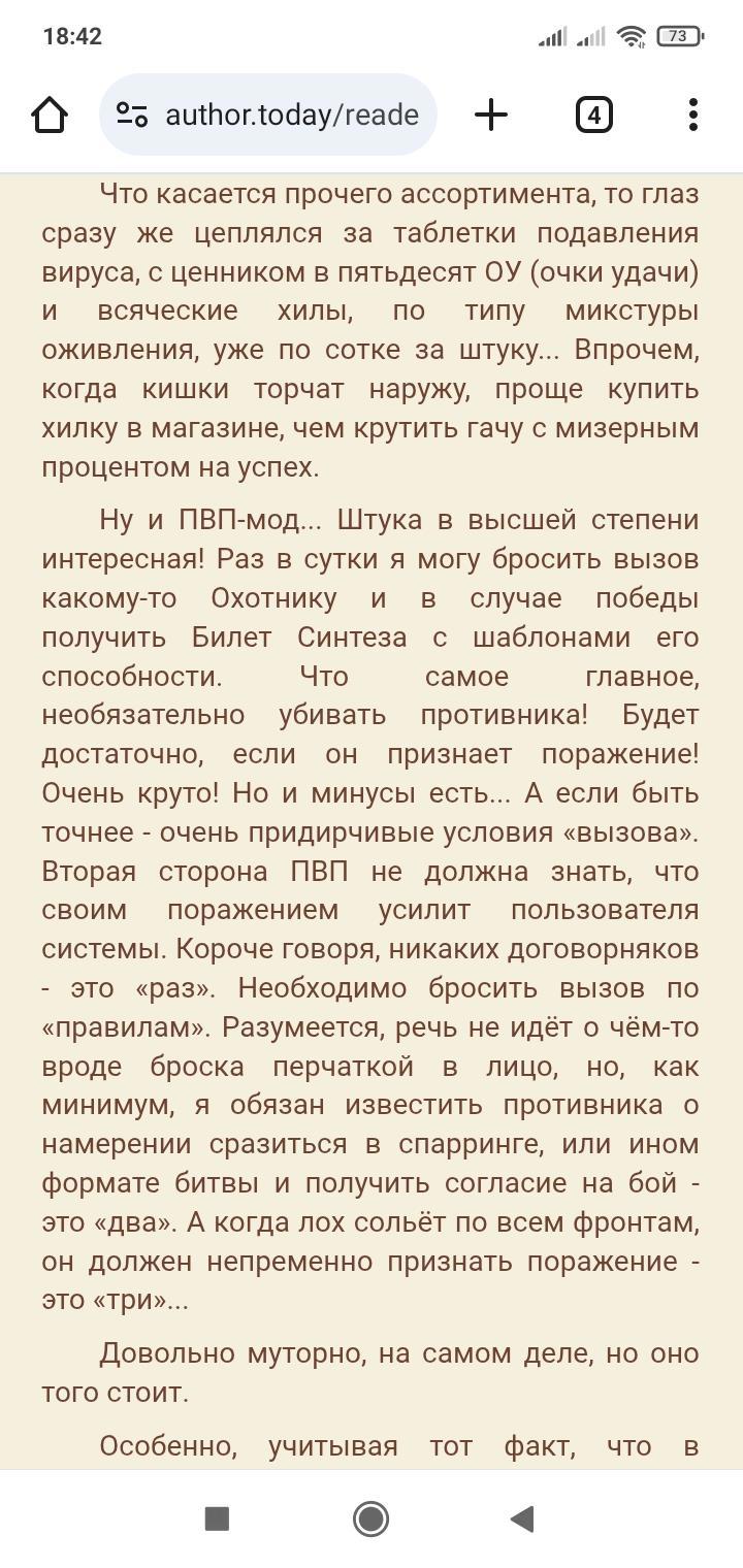 Хм... Я думал платные только книги, а фанфики читают бесплатно. Буду знать. Что же до её содержания, интереса и популярности, поскольку это моя первая работа, в ней содержится много ошибок и по тому, что я помню, написана она ниже среднего уровня. Продолжения книги были написаны ещё на уровень ниже. Объективно, книга не претендует на цену, поскольку это не выгодное вложение для читателя, но для бесплатного ознакомления, дабы скоротать время, она подходит. Мне лестно, что вы хорошего мнения о этой части, поскольку и мне в том времени она очень нравилась. Может, она может зацепить читателя, но я уже пости забыл её содержание. Может, если будет время, сделаю ремейк. Но, это не в скором времени. Ещё раз спасибо за комментарий ( ╹▽╹ )