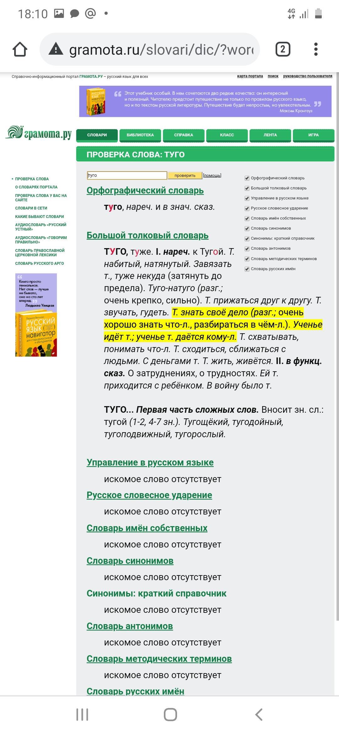 Однако, с вами каши не сваришь. Вы не слышате, что я говорю не просто про слово "туго", а говорю про идиому "знать свое дело туго". У меня нет знакомых филологов, но я уверен они подтвердили мою правоту. Не самое популярный фразеологизм, даже немного устаревший, но он все же есть.
