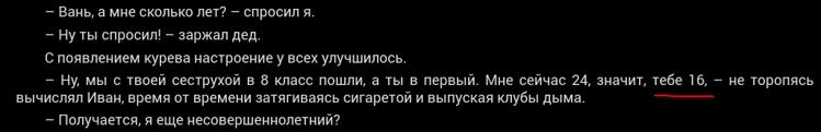 возможно уже кто-то неточности возраста гг упоминал, но напишу, пока не забыл.