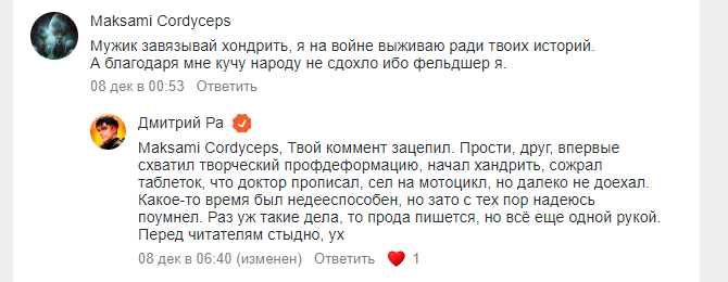 И ведь этот автор, знает меня идеально в ник, знает, что я спрошу и знает, что он мне ответит. Но ещё ни разу ни один из нас ни жестом, ни словом не показал, что каждый из нас знает сценарий. Бывает автор отсутствует днями, когдя я захожу на сайт, тогда я подсматриваю за ним на бусти, он равнодушно постит нейропикчу, выбрасывает черновик и возвращается в комментарии:
