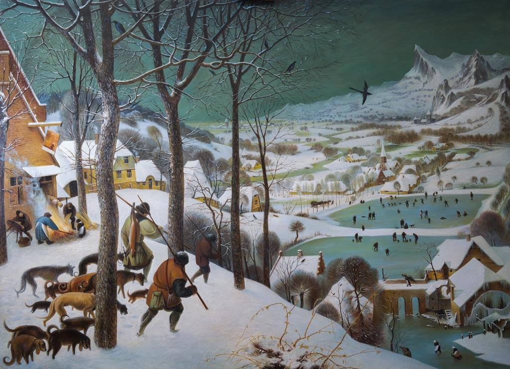Слева сжигают мебель как принято в чумных домах. У большинства труб нет дыма, значит они не жилые, охотники возвращаются практически без добычи. И т. д. Помню разбирали подробно эту картину - она считается шедевром вовсе не за рисунок, а за сложную смысловую нагрузку.