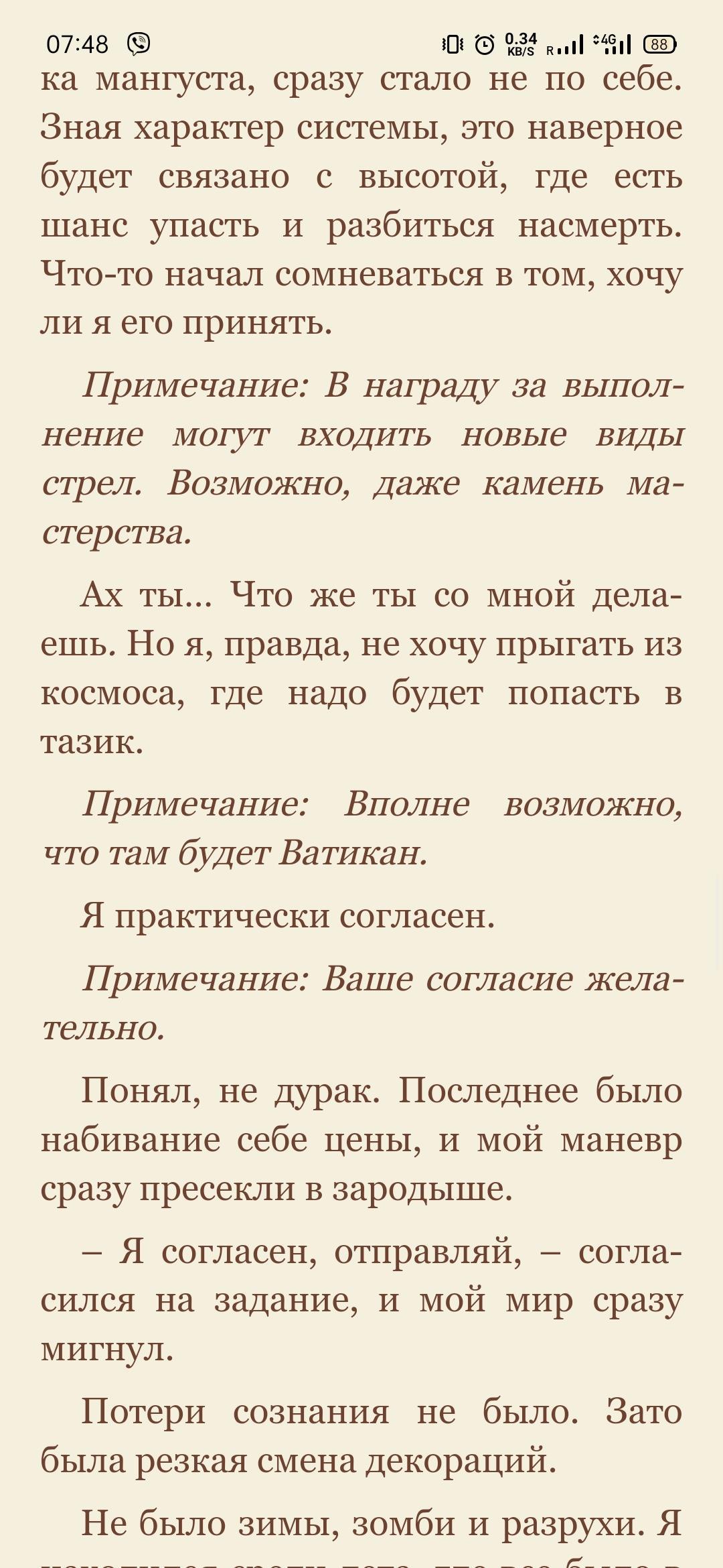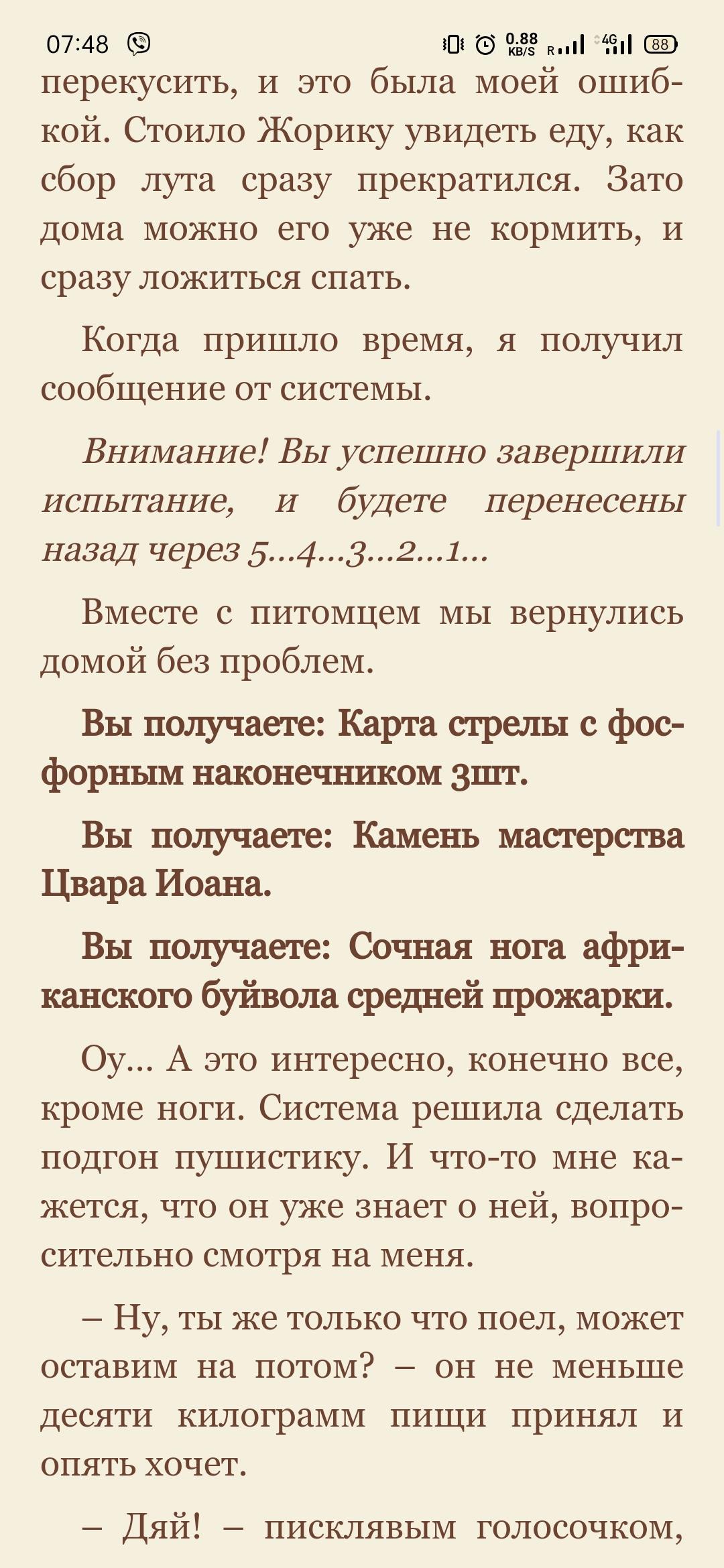 Оооо,отсылочка на "Идеальный мир для социопата" уважаю P.S:Автор,смотри чтоб Жорик случайно гг не скушал,он без Полины не в лучшем настроении