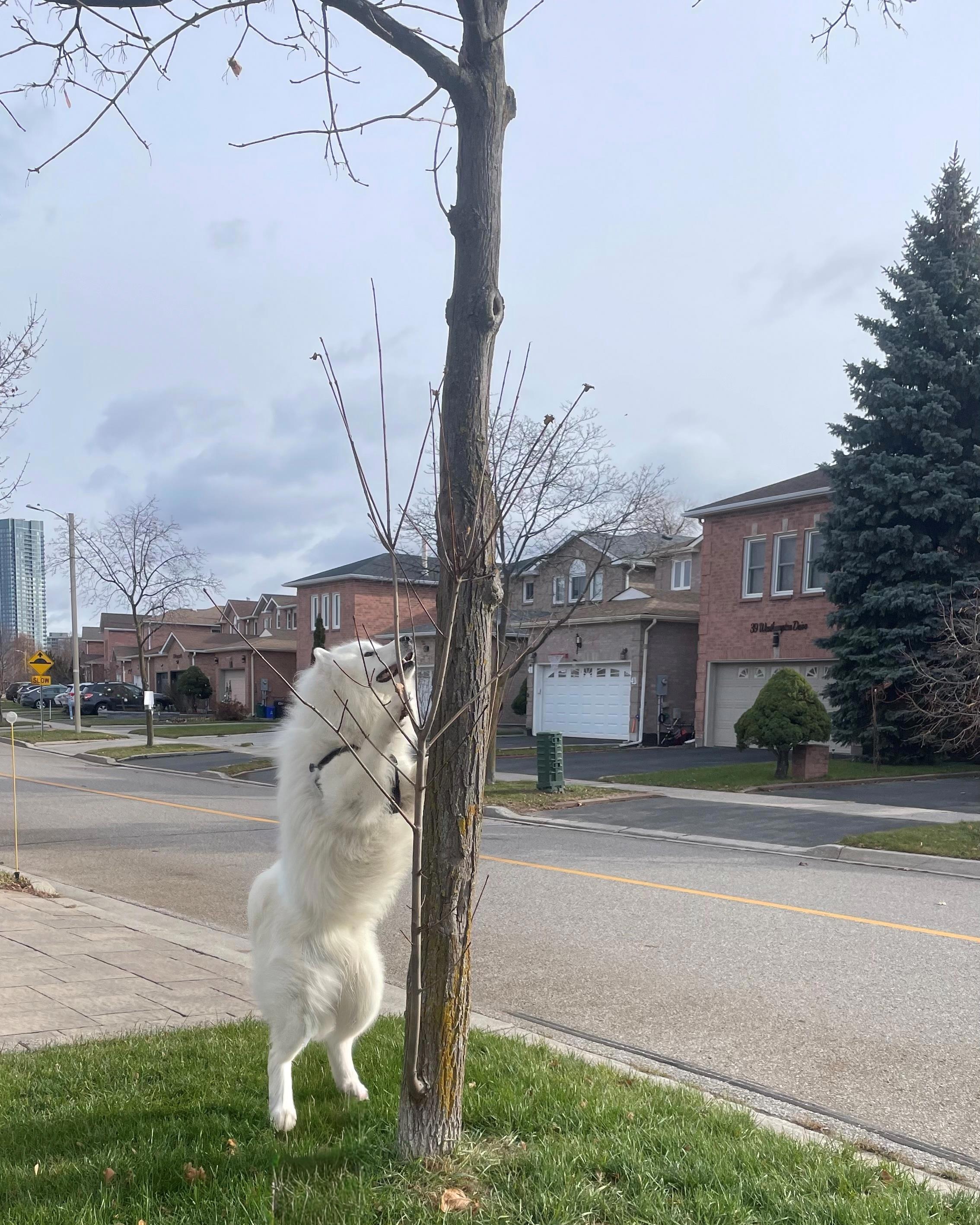 Да, мой хоть раз за ночь будит - выходит на снежок прохлаждаться. Самоеды - не рабочие собаки, а выведены только для шоу: почти не линяют, практически не пахнут, грязь обсыпается за пол-часа, сохнут моментально. Белые, чистые и пушистые - идеальные диванные звери... но дома жарко, и белки...