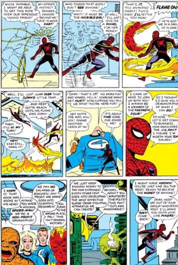 Знаешь, почитай СТАРЫЕ комиксы. Был момент где паук встретил Ф4, но ушел от них, так как они геройствовали ПРОСТО ТАК, и ИМ НЕ ПЛАТИЛИ. Так что старый Паук был менее альтруистичен чем многие думают.