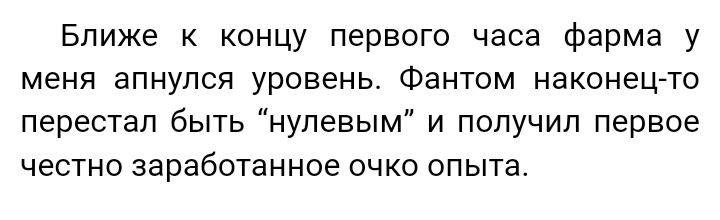 Выбивают в диссонанс моменты, где сперва в таверне гг с Виатой, упали пад стол ат смеха и чуть позже, рассуждения гг, о постройке подземного убежища и крио-сне... Пытаюсь оформить свою мысль, так что бы автор не воспринял её как оскорбление, но из-за только что прочитанного не выходит. Скажу прямо, не знаю как дальше, но выглядит, как будто книгу пишет взрослый, впадающий в детство, причем взяв от этого детства какие то стремные шутки, обороты и идеи и пытается донести, что действующие лица не взрослые люди, а дети лет 14 из 07-14 годов... В остальном очень интересно, буду читать дальше, автору большое спасибо!!!