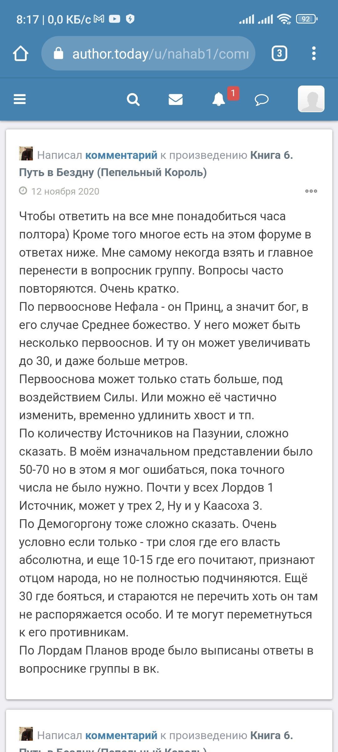 Написал комментарий к произведению Книга 16. Путь в Бездну (Алый Бог)