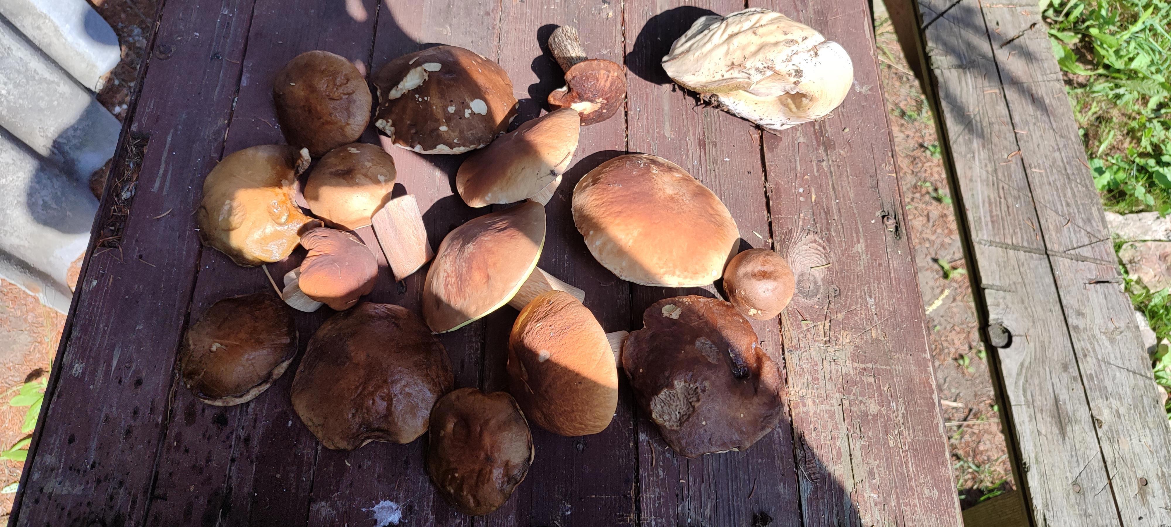 Тоже хотел в лес за грибами, но побродив по участку собрал белых на 2 кастрюли, сварил и успокоился. Только под бытовкой 5 шт.
