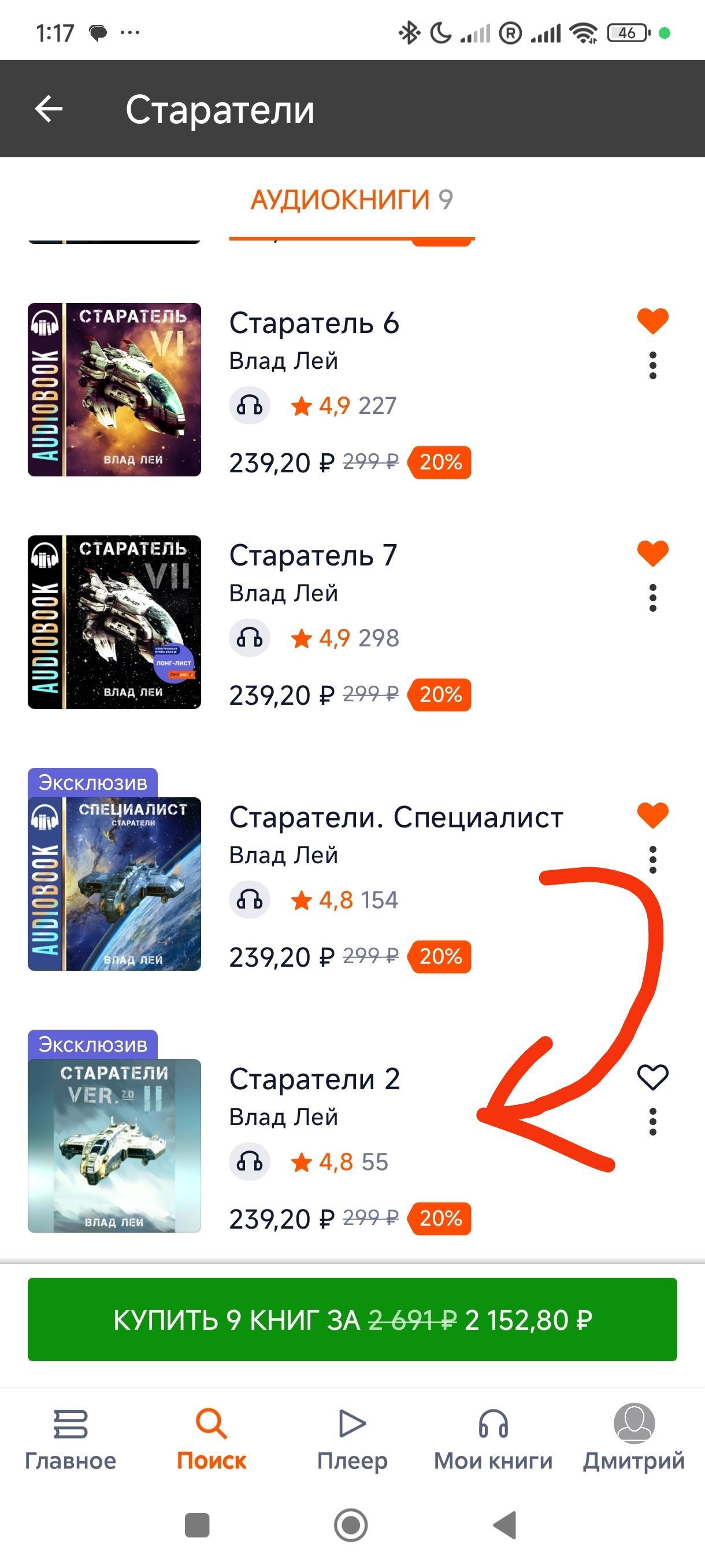После Специалист сразу идёт Старатели 2. Вот скрин. Приложение Литрес: Аудио.