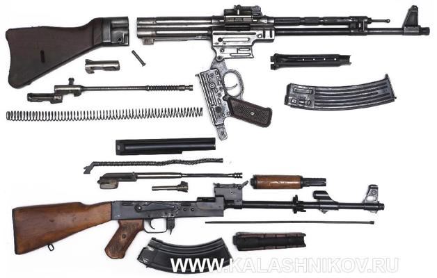 StG-44 был ближе к М-16 по принципам работы автоматики. Есть видео на Ютуб, где его разбирают и сравнивают с автоматом Михаила Тимофеевича. Разве что дизайн похож. И картинка для наглядности.