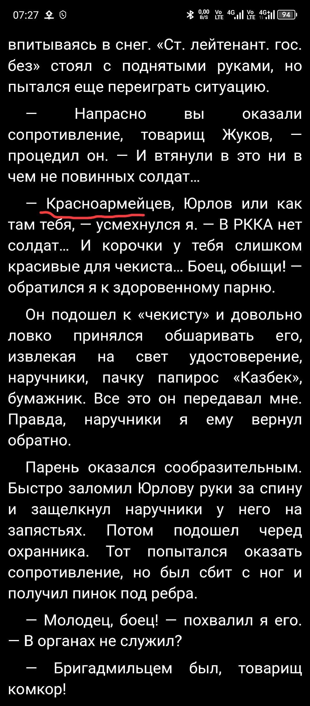 Не знаю, просил ли кто исправить, но у вас получилось прям рядом. Сначала красноармейцы, потом рядовой.