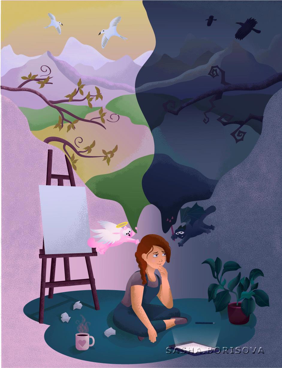 А в душе я мечтатель и электровеник, которому мало обыкновенной рутины. Так я открыла для себя два мира, где можно не ограничивать свою фантазию: писательство и рисование.